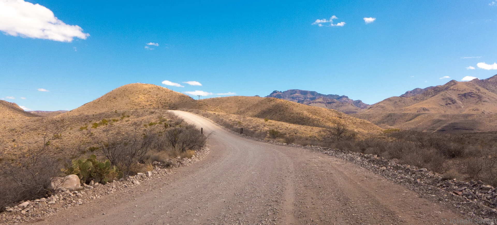 I saw one other motorcyclist that day, a guy on a DR650 who'd ridden up from Terlingua. We talked a while, then moved aside as a Border Patrol truck rumbled past, each of us waving. He continued on north for Marfa and I continued putzing with my video rigs until another two riders came by. They stopped briefly to see if I was ok, advise me that my GoPro was mounted in the wrong place, then tore off on their KTM's with their race faces on.