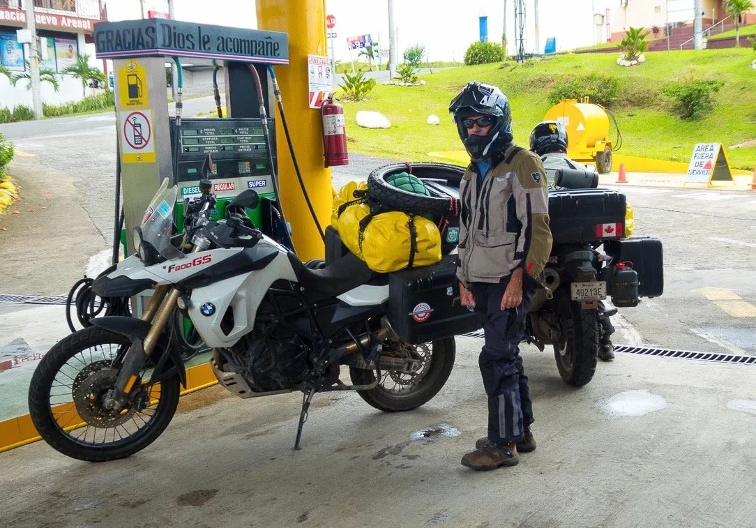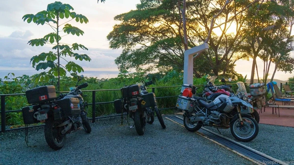 Today, on a less dramatic scale, our little group consisting of Jules St-pierre, Christine Harel, Charlie Qian and myself had a long, tiring, ride south from La Fortuna, Costa Rica along the coast. The distance was only a couple hundred miles but the incessant heat and road conditions drug out the day. The last couple of hours were in heavy rain and we were soaked.